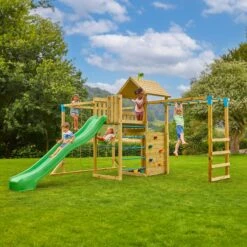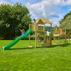 TP Skywood Wooden Play Tower With Ripple Slide, Monkey Bars & Double Swing Arm – FSC® Certified