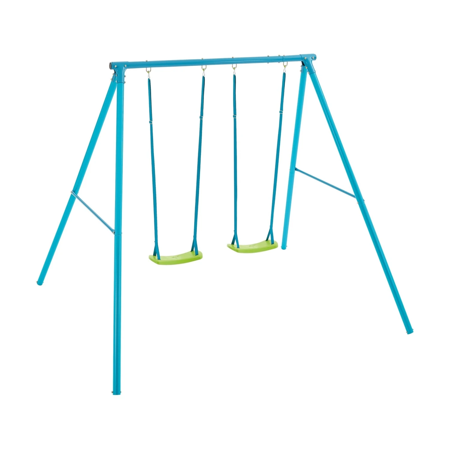 A robust, Single Swing Set in attractive blue and lime colourway. All in one box and easy to assemble.