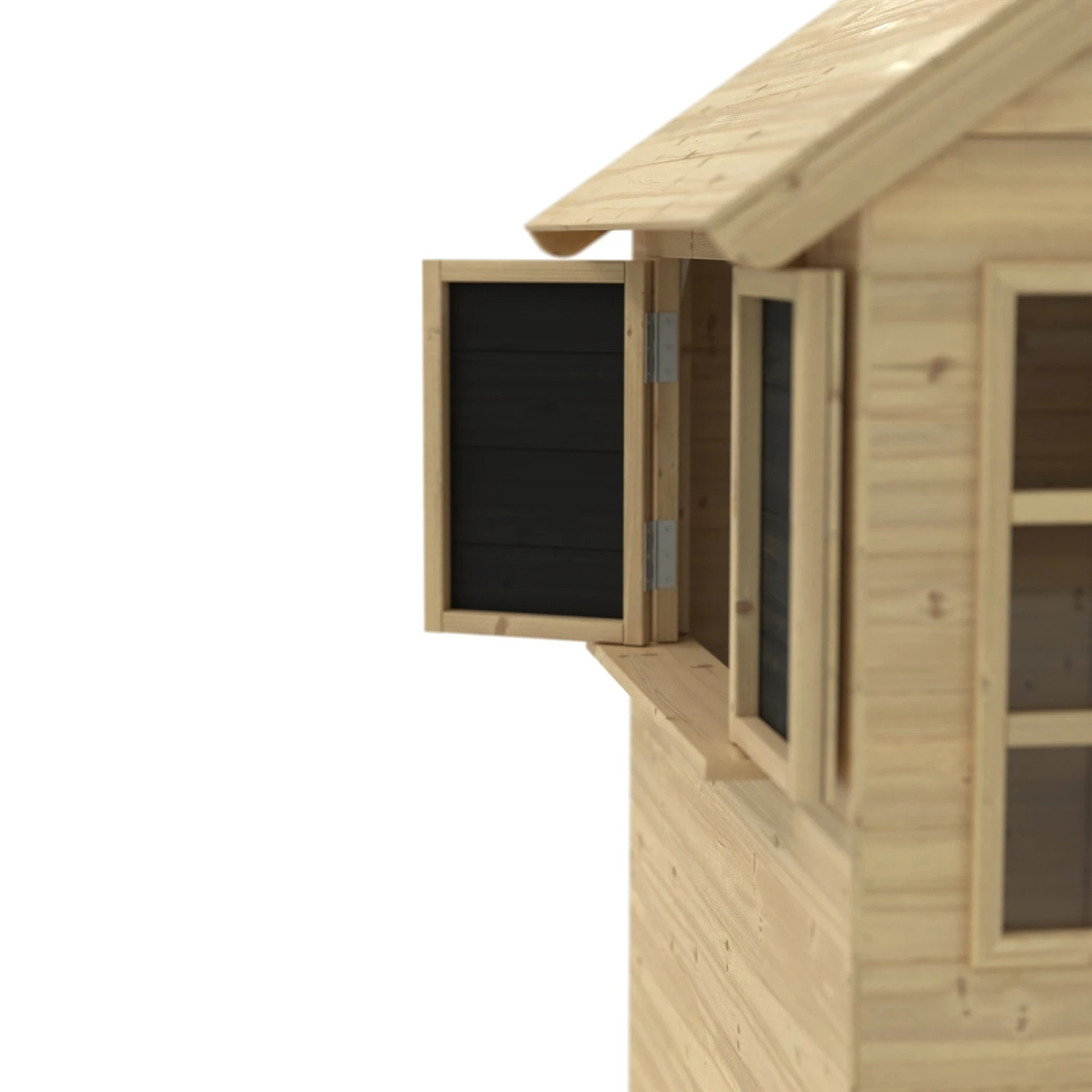 - Playhouse comes with a mud kitchen & window shutter accessories.