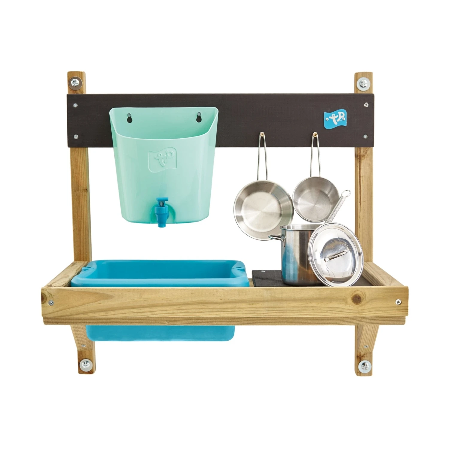 Unleash their inner chef with the TP Early Fun Mud Kitchen Playhouse Accessory. This compact Mud Kitchen accessory comes complete with utensils, a water butt with tap, a splash bowl and stencils to help them cook up something special. Simply bolt the Mud Kitchen Playhouse accessory to the side of their playhouse or to other suitable surfaces for the messy fun to begin. Made from FSC® certified wood this Mud Kitchen accessory provides lots of extra play value and will get the kids outside whatever the weather!