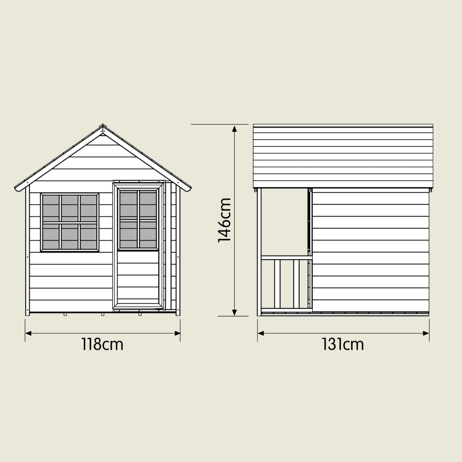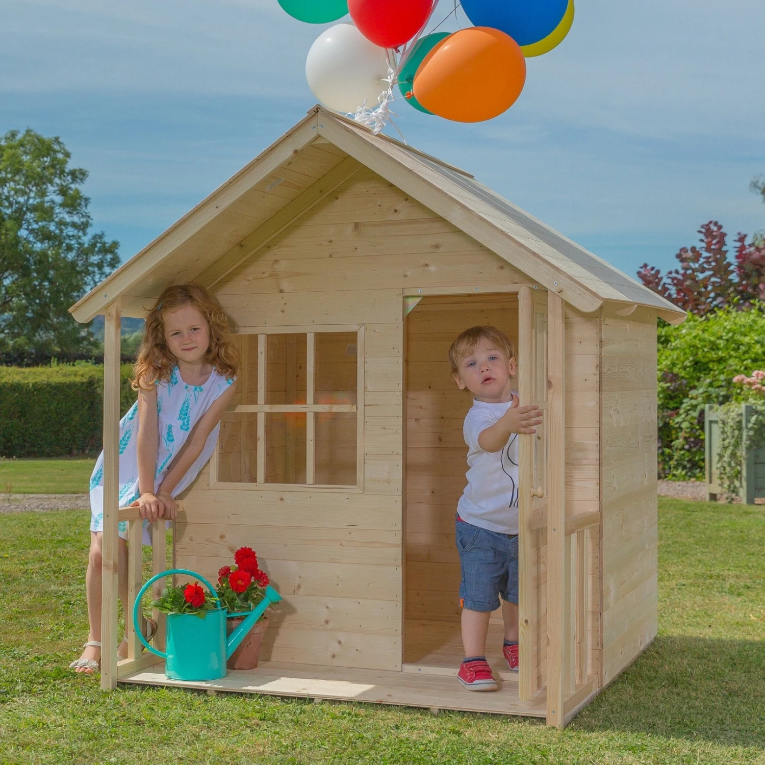 The TP Forest Cabin Wooden Playhouse is a lovely wooden playhouse with a floored verandah which is perfect for imaginative and social play. The beautiful playhouse features a Perspex window and full height door, perfect for encouraging garden fun!