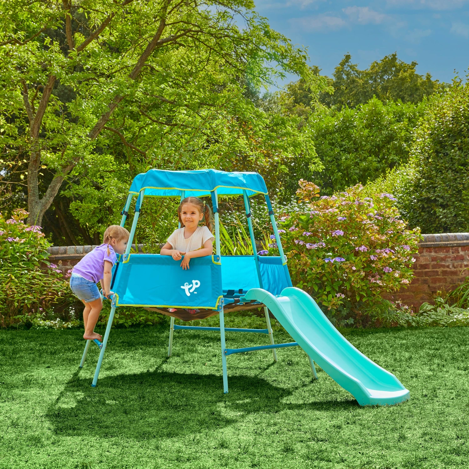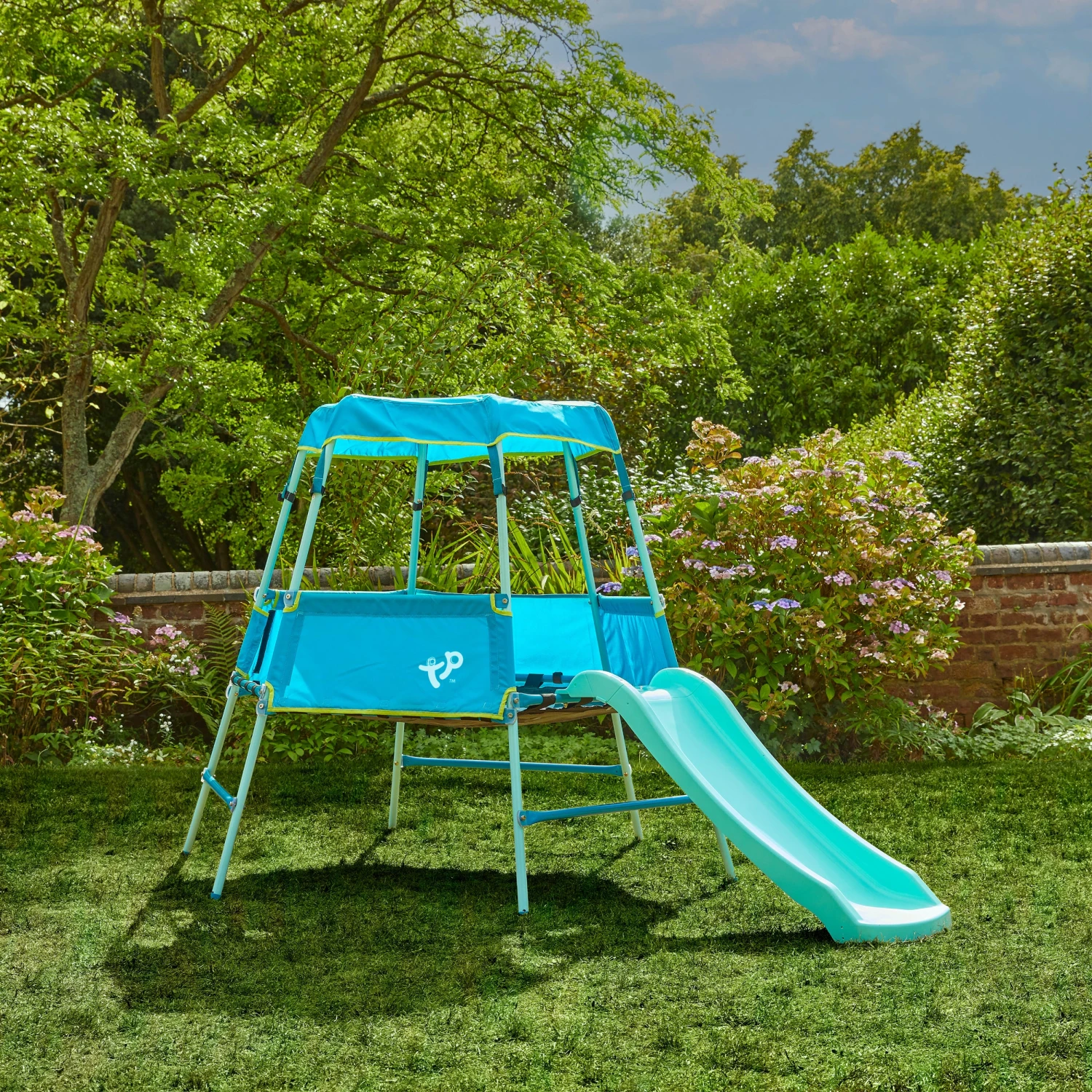The climbing frame comes complete with an adventure playmat, canopy for sun protection and growable slide, that sits at 1.2m when built at a lower height, and 1.8m when at full height! Little adventurers will have endless imaginative play in their new growable climbing frame!