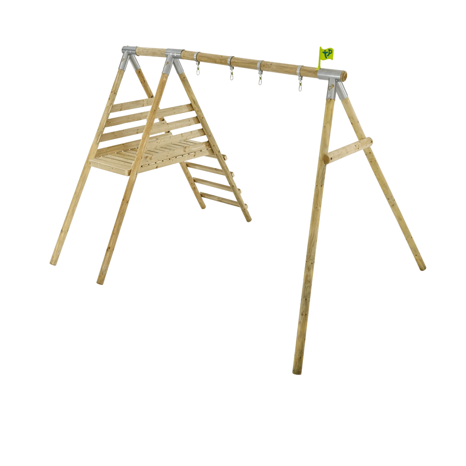 Rugged and rustic, this Double wood swing frame and deck comes ready for you to choose your ideal combination of accessories to suit.
