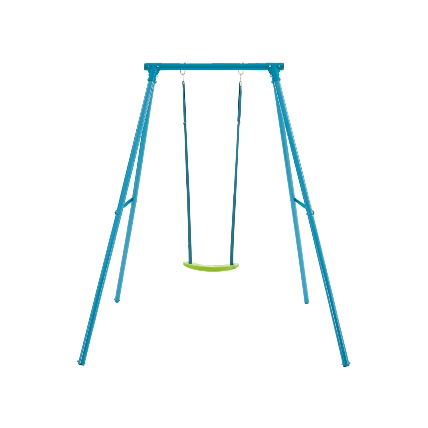 A robust, Single Swing Set in attractive blue and lime colourway. All in one box and easy to assemble.